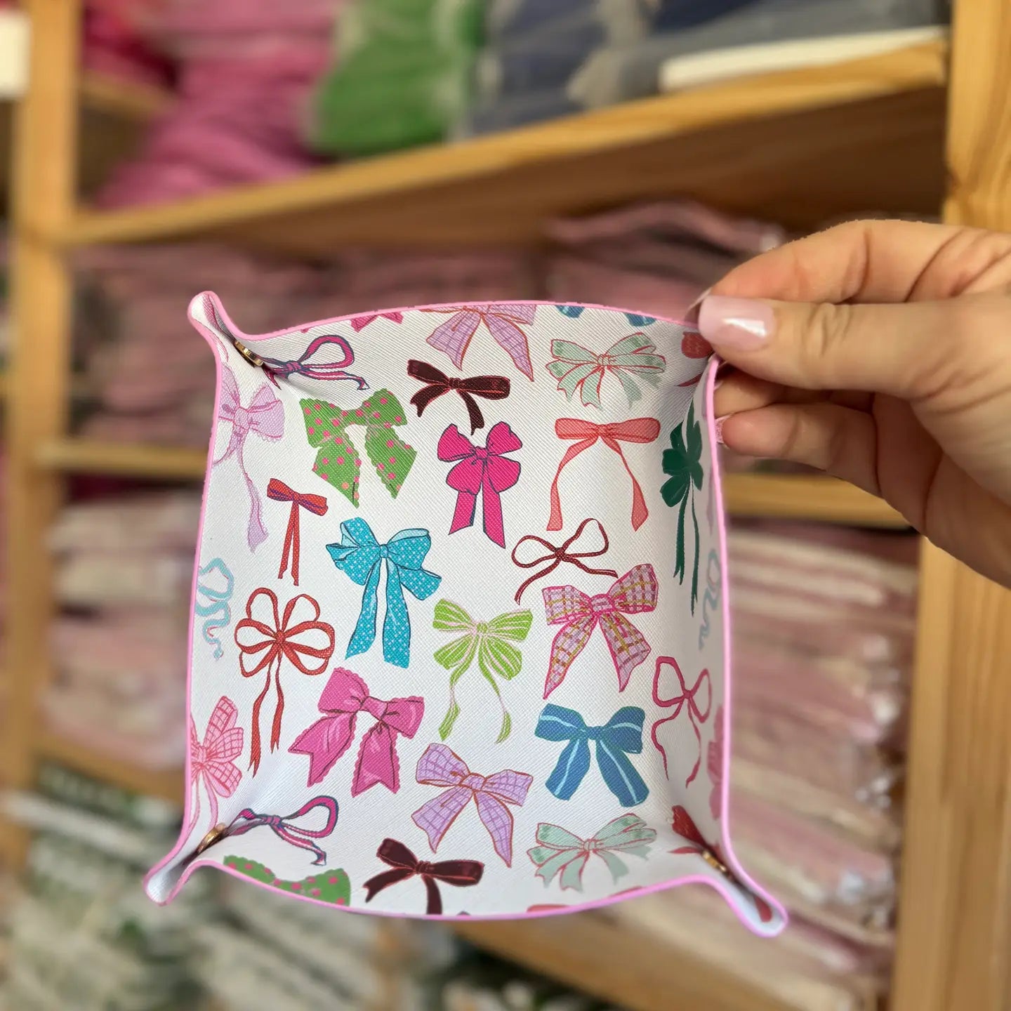 Material is a high quality Saffiano printed PU leather-like material. Gold accent snaps for an elevated look.