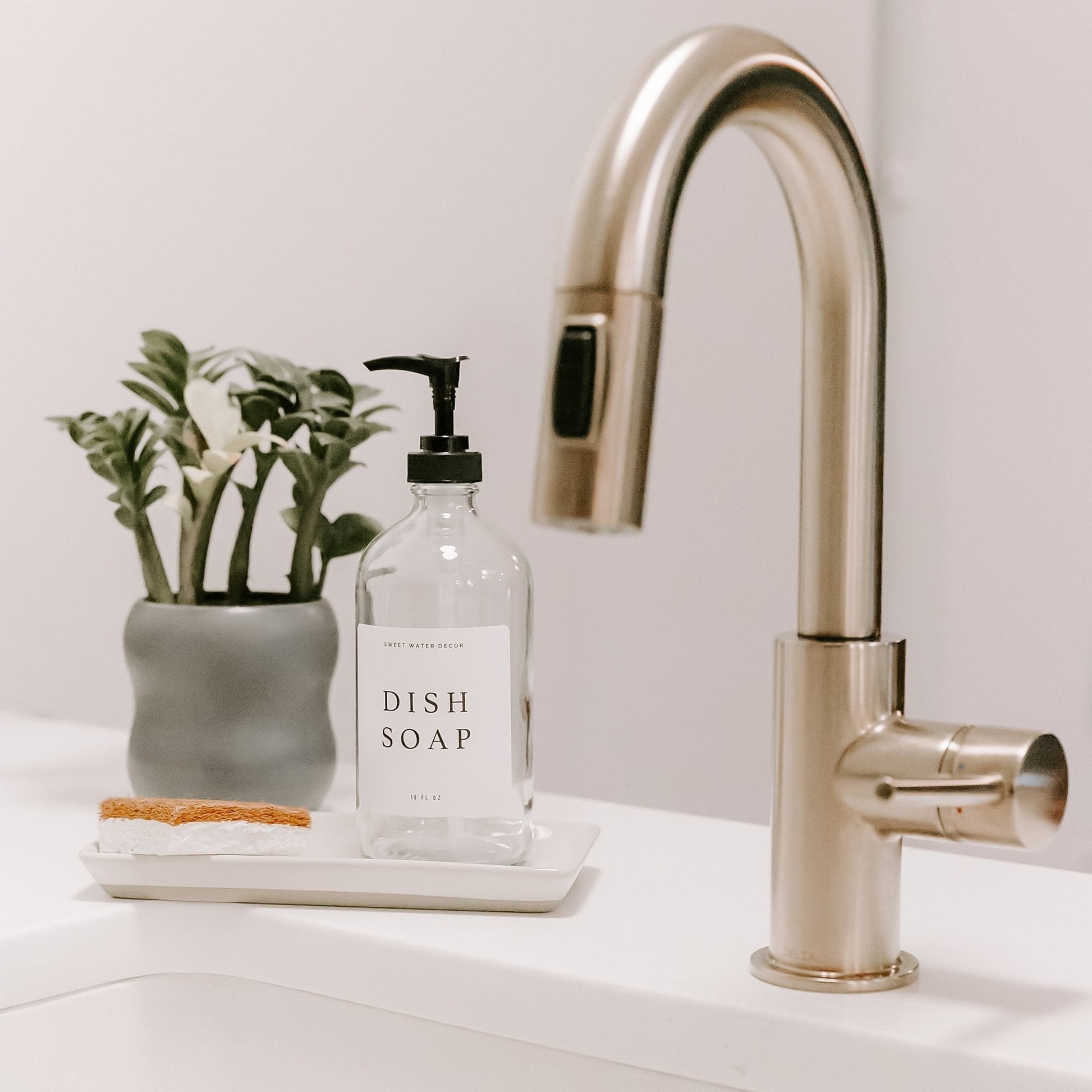 Our stoneware tray is the perfect addition to your kitchen and home. Our trays fit our Sweet Water Decor soap dispenser bottles so you can have your hand and dish soap side by side. These rustic trinket dishes are also perfect as a jewelry dish, key holder, and even as an appetizer plate! The uses are endless for our cream rectangle dish.