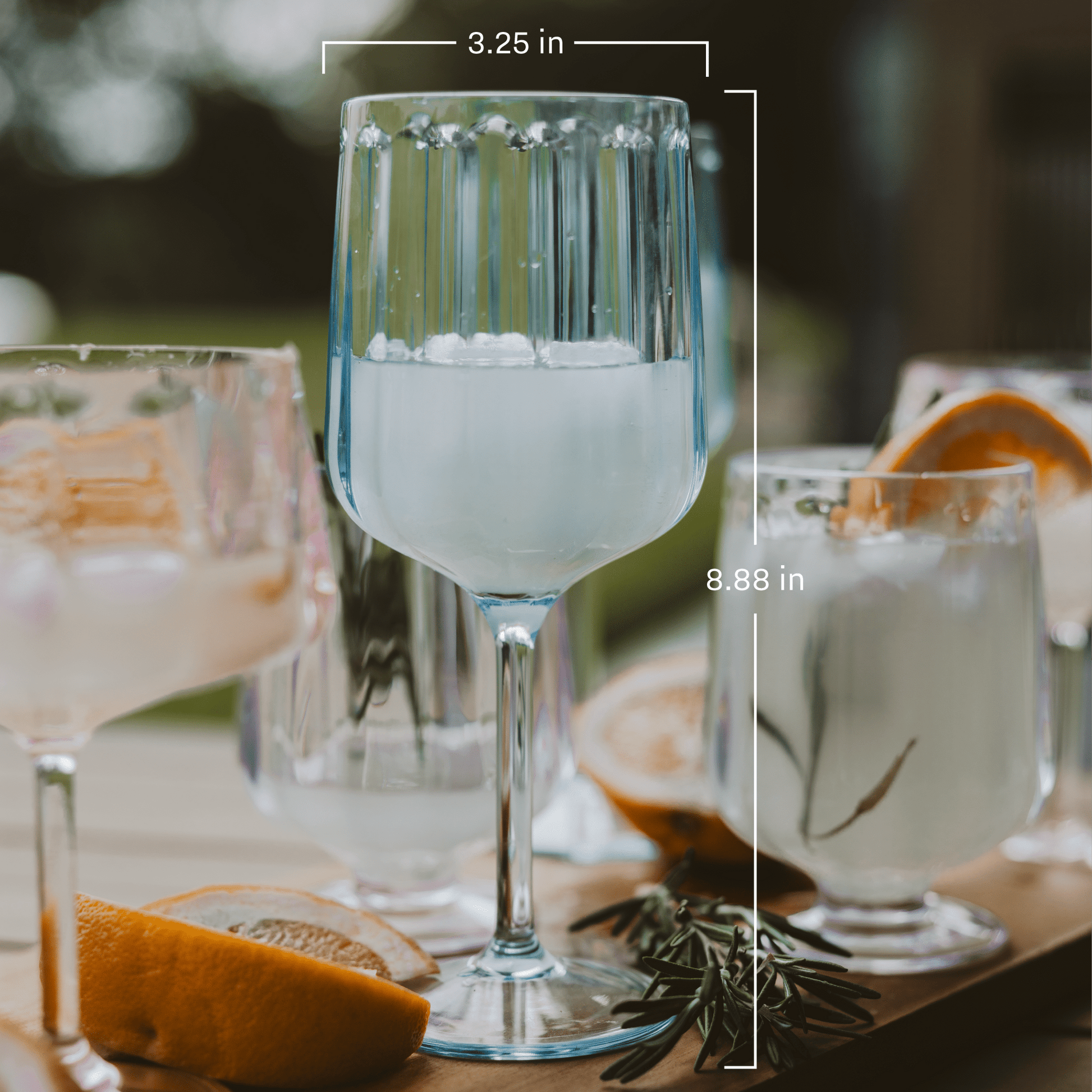 Raise a glass to effortless entertaining with our crystal-clear light blue wine glass. Crafted from durable, lightweight plastic that looks just like real glass, it brings a touch of sophistication to any moment. Set it out on a beautifully styled patio table at golden hour, filled with crisp white wine as friends gather. It’s just as effortless for a relaxed afternoon on the deck with sparkling water or for game night, book club, and holiday hosting.